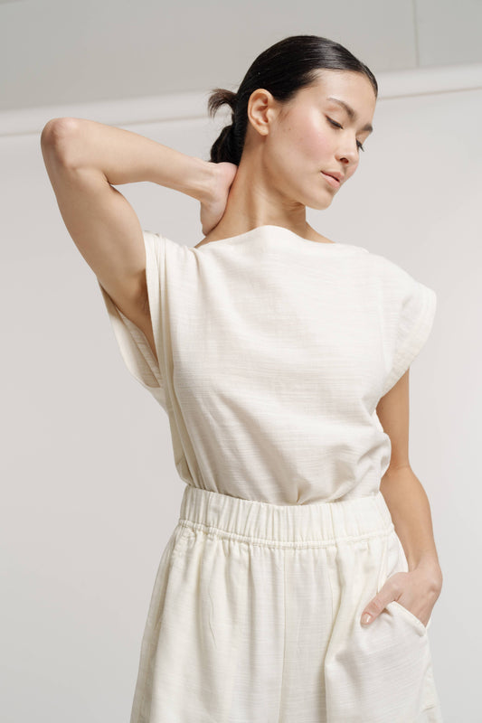 Sleeveless top, ivory organic cotton / Everyday
